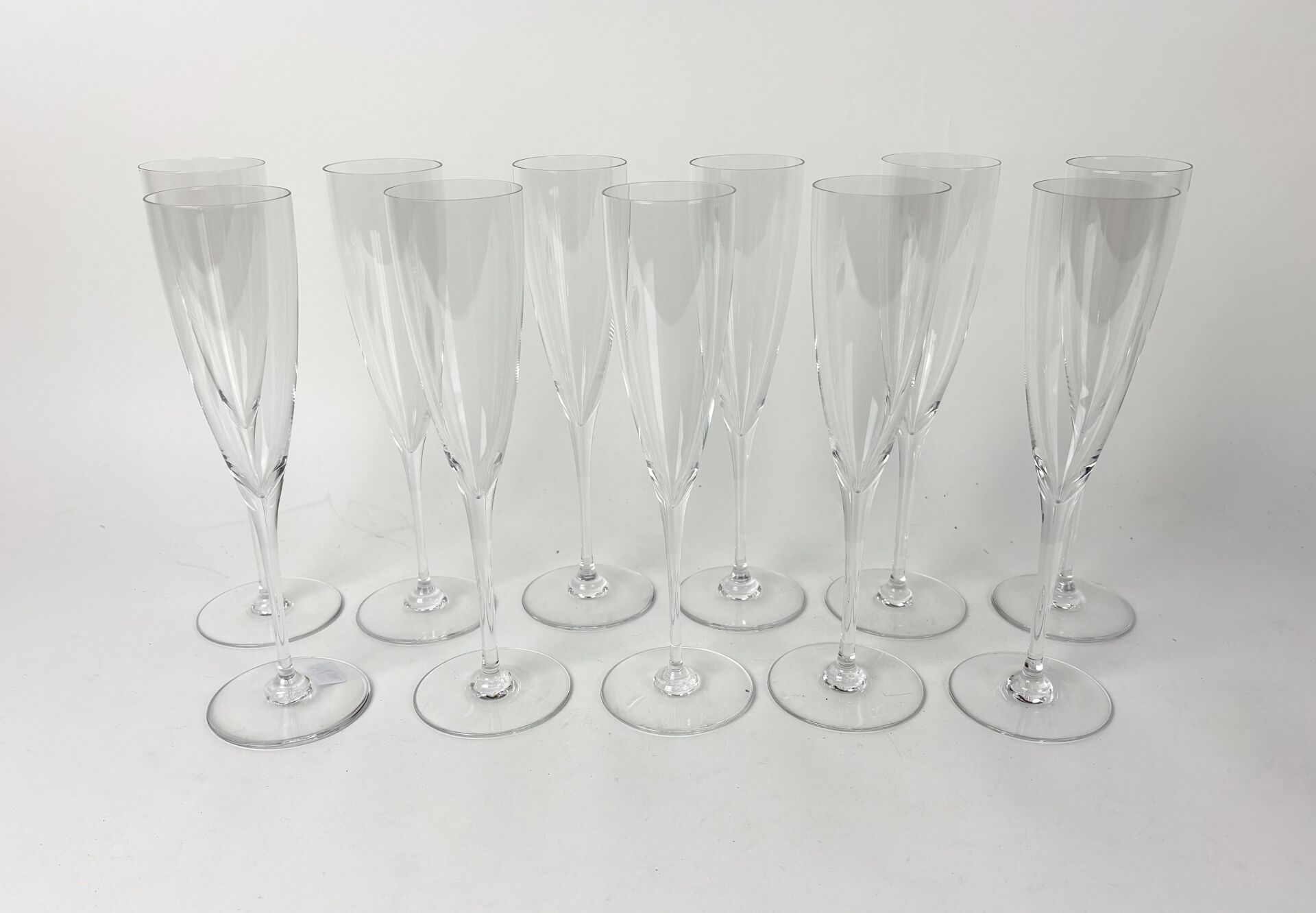 BACCARAT Suite de 11 flutes à champagne en cristal