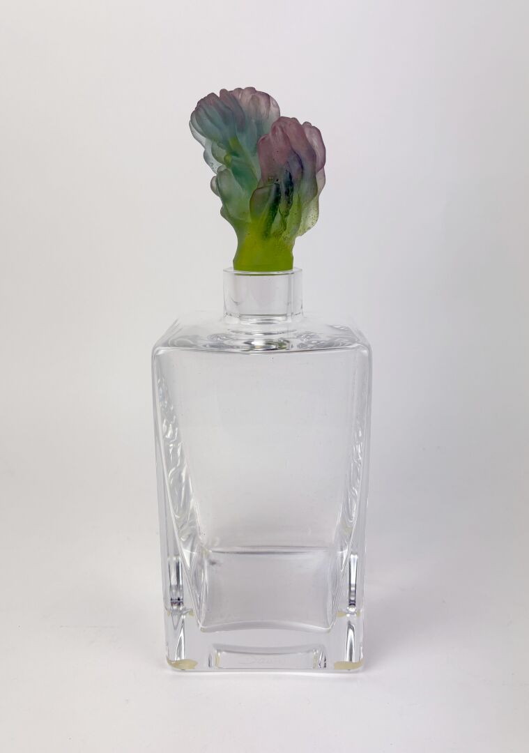 Hilton Mc CONNICO (1943) pour DAUM, France Carafe en cristal, le bouchon en pâte de verre vert en forme de cactus Signée Daum France H : 25 cm