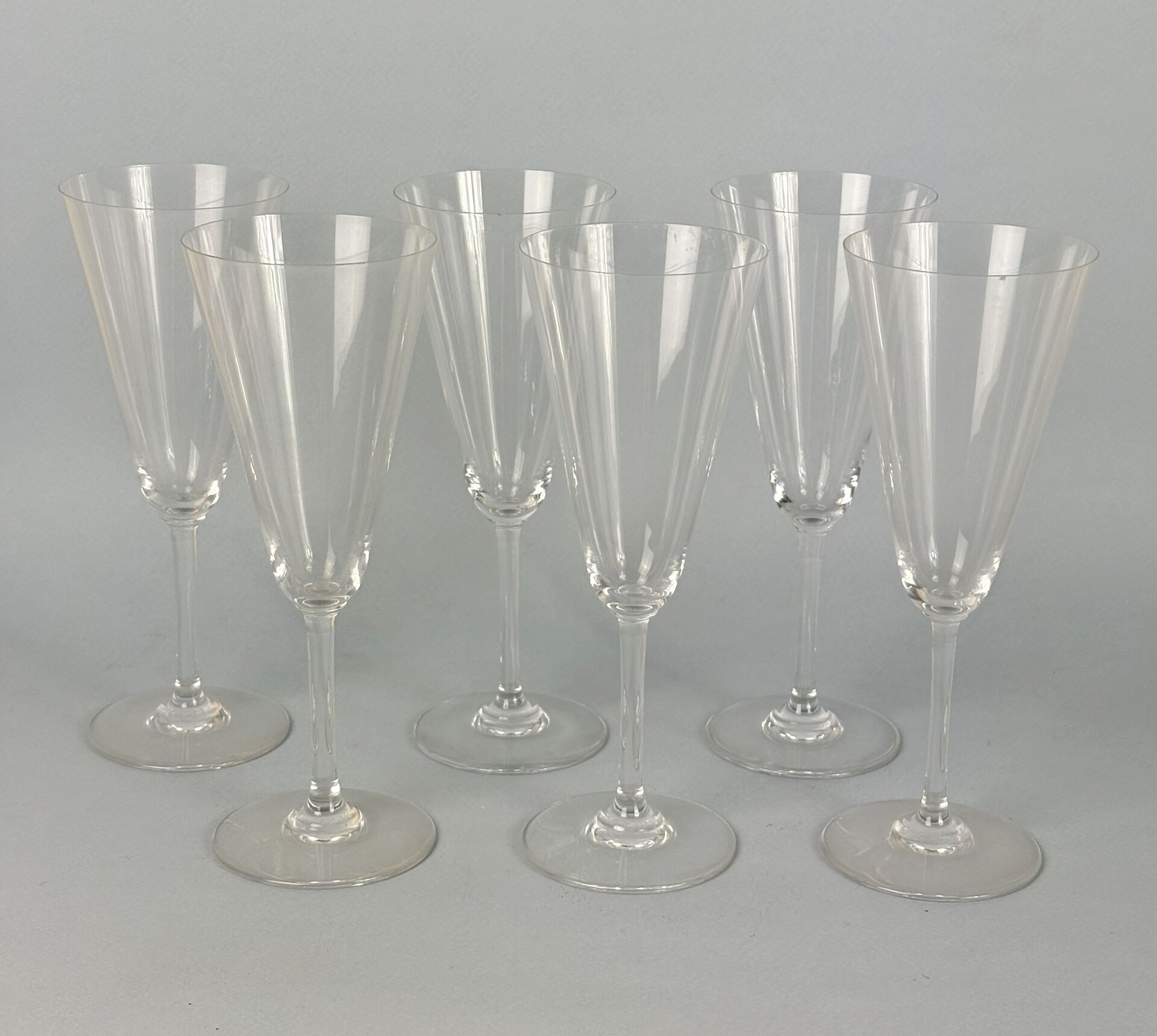 BACCARAT Modèle Perfection - Suite de six flûtes à champagne en cristal Deux légers chocs H : 18.2 cm