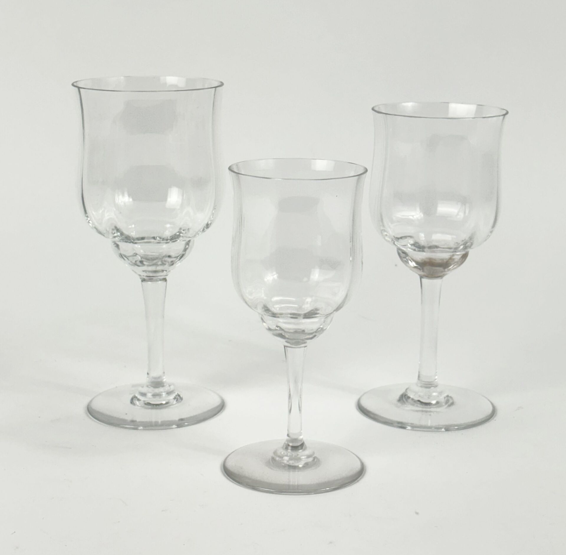 BACCARAT Modèle Bretagne, variante du modèle Missouri - Partie de service de verre en cristal taillé comprenant : - 10 Verres à eau - 9 Verres à vin rouge - 10 Verres à vin blanc - 10 Flûtes à Champagne