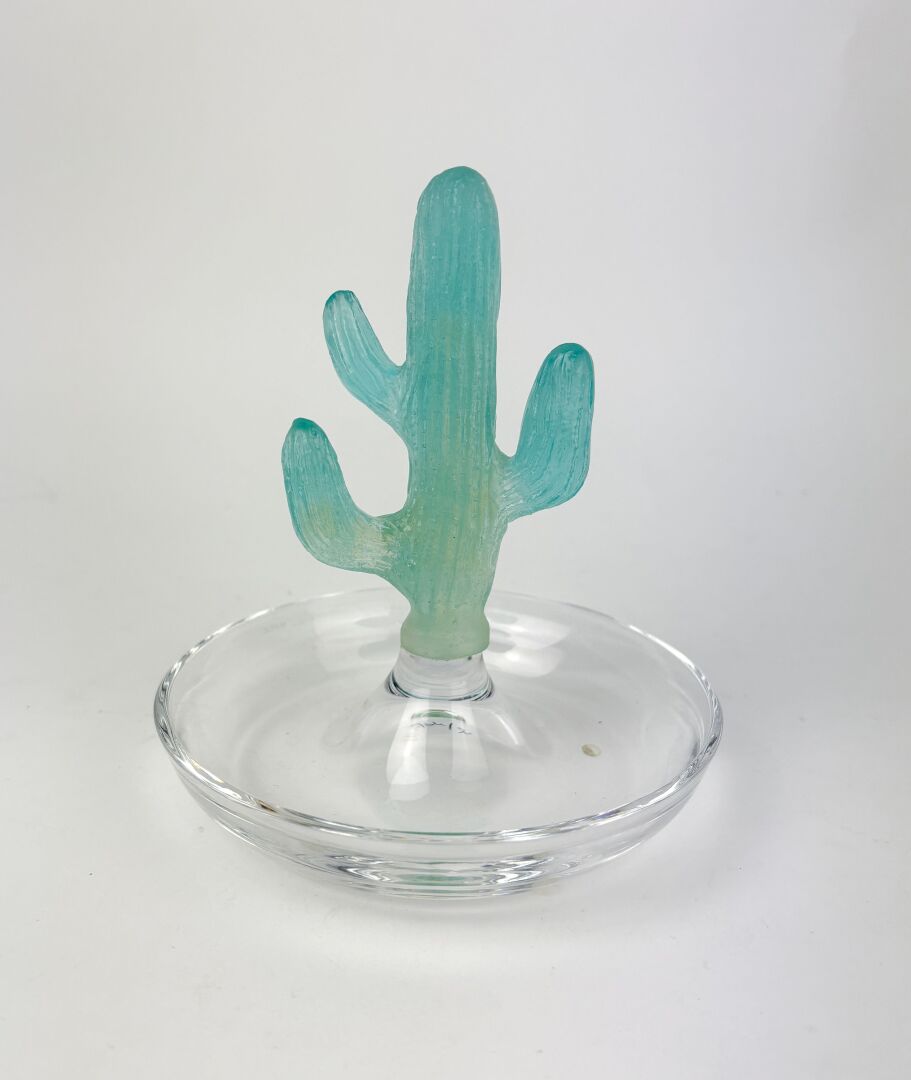 Hilton Mc CONNICO (1943) pour DAUM, France Modèle Cactus - Baguier en cristal translucide et pâte de verre moulée pressée teintée vert. Modèle créé vers 1980 H : 15 cm