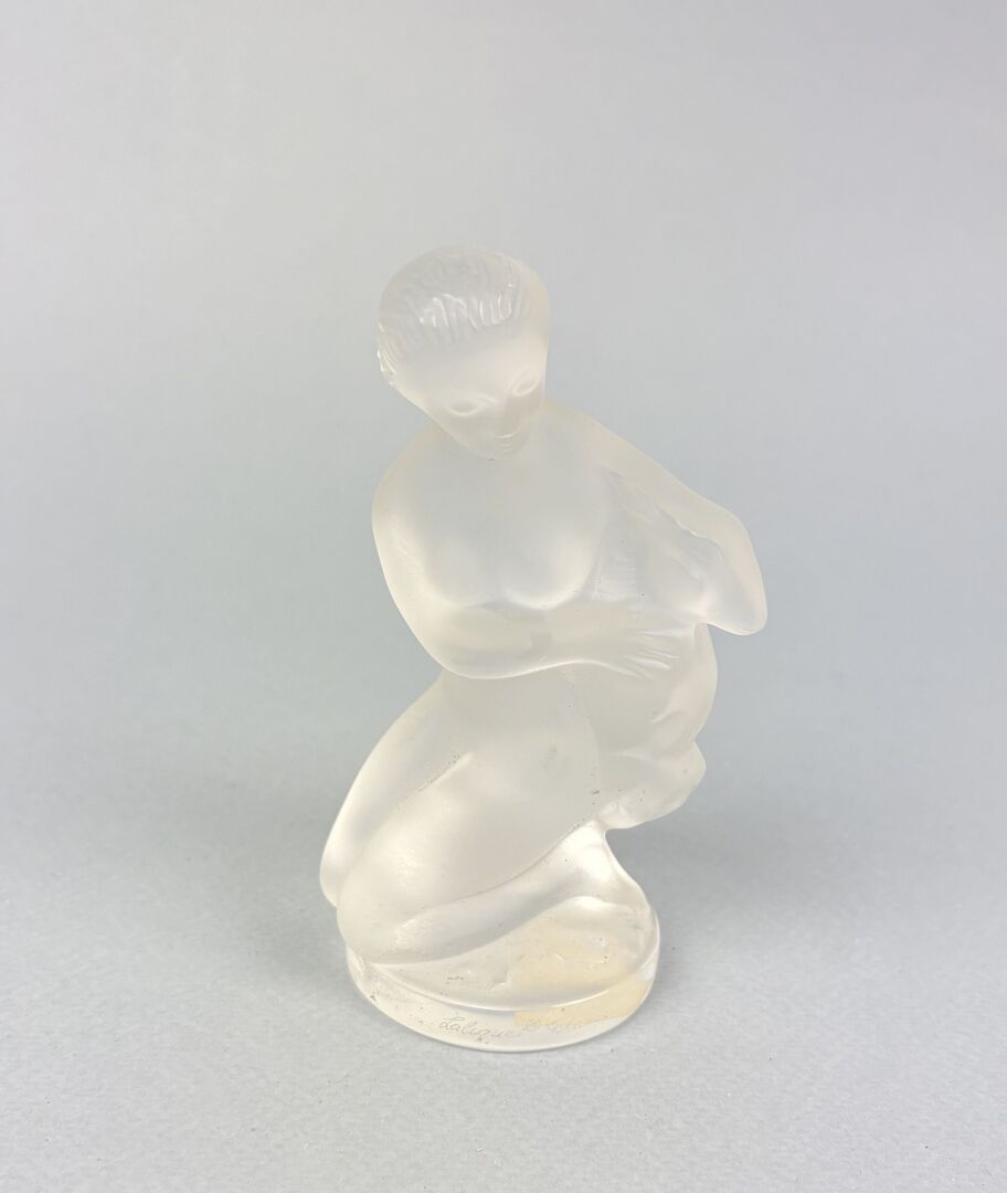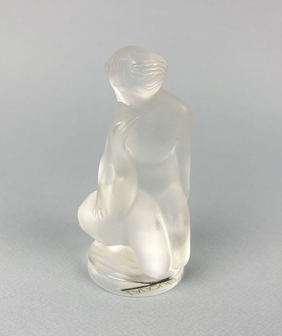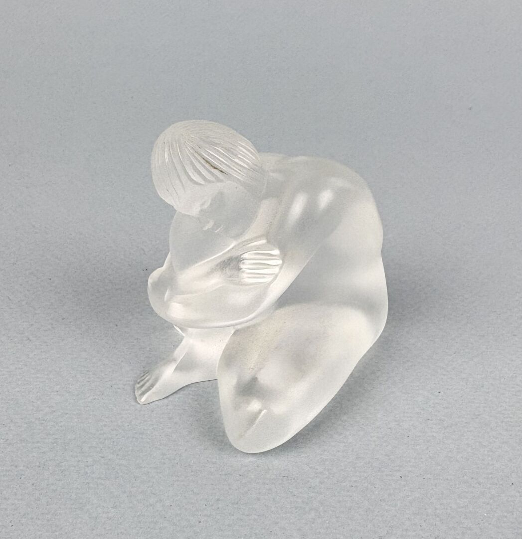 LALIQUE Femme assise Sujet en verre pressé moulé satiné H : 7 cm