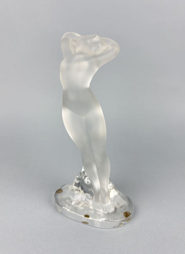 LALIQUE Femme nue bras levés Sujet en verre pressé moulé partiellement satiné, signé sur la base H : 23 cm