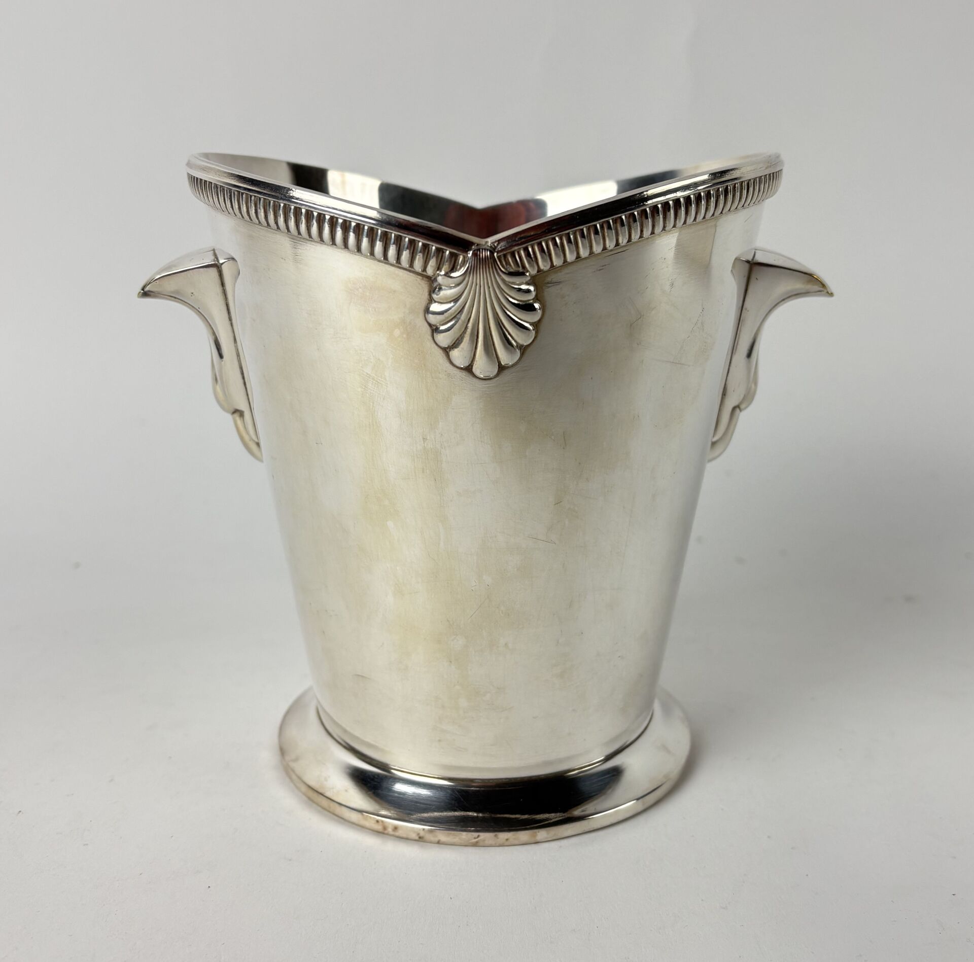 Seau à glaçons en métal argenté à décor de frises de goderons et coquilles H : 15 cm