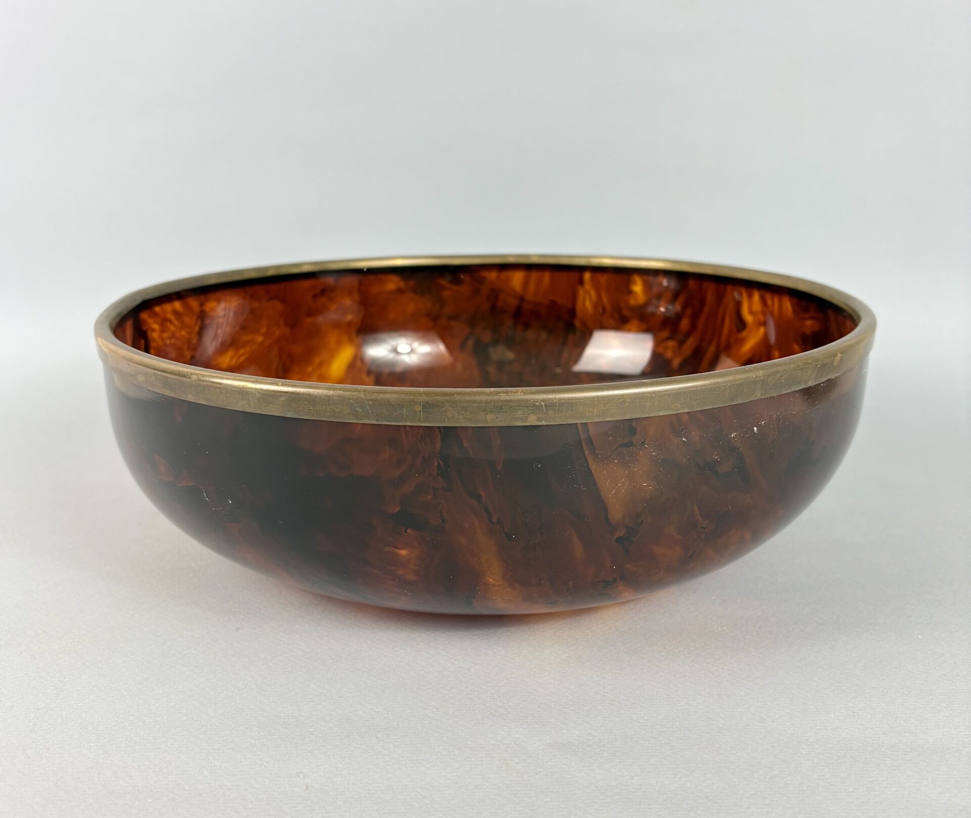 Christian DIOR, dans le gout de Grande corbeille en plexiglas à l'imitation de l'écaille cerclée de métal doré D : 28.7 cm