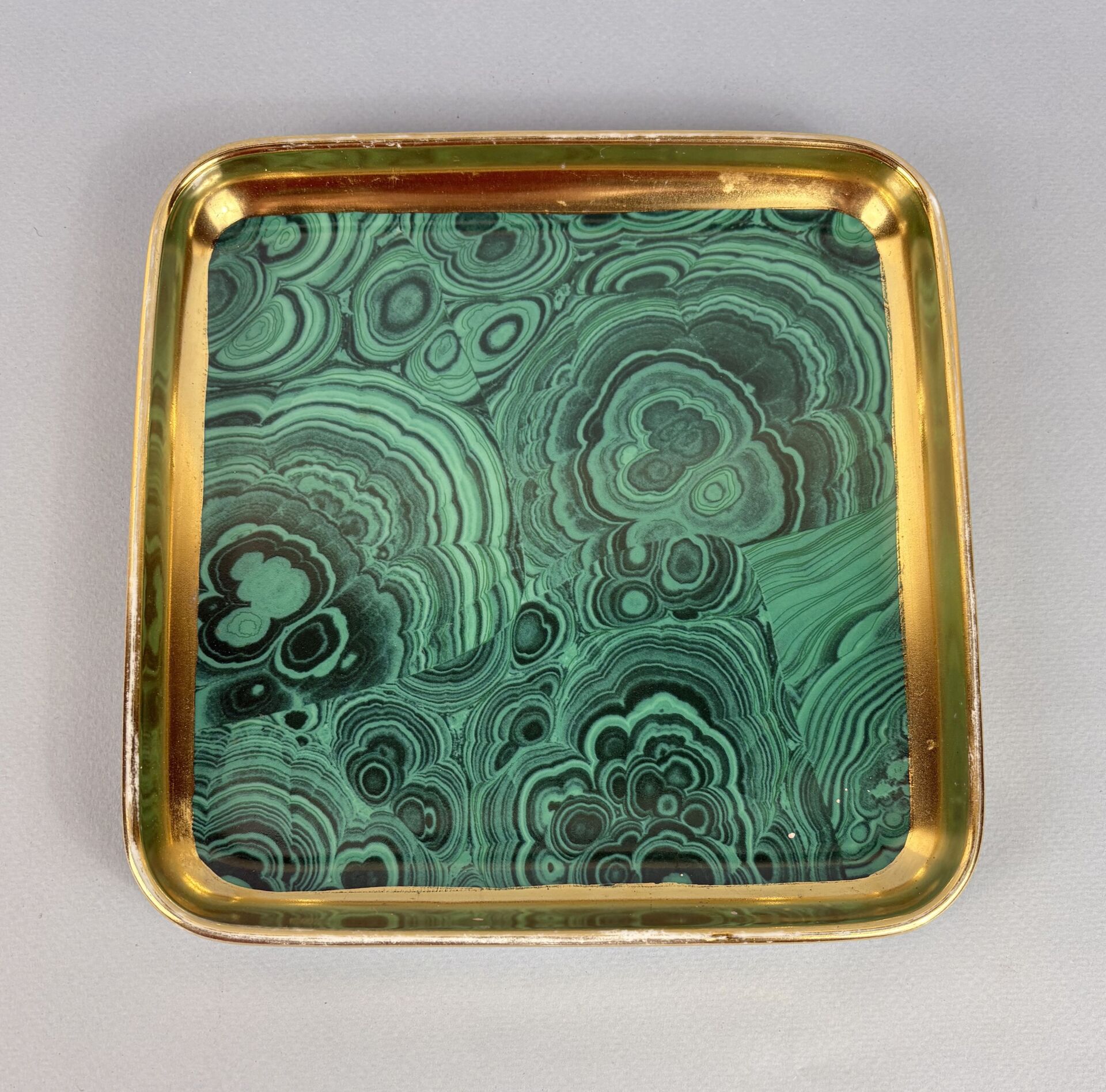 Christian DIOR, dans le gout Plat en porcelaine carré à décor à l'imitation de la malachite, bord doré Usures à la dorure Coté : 20 cm