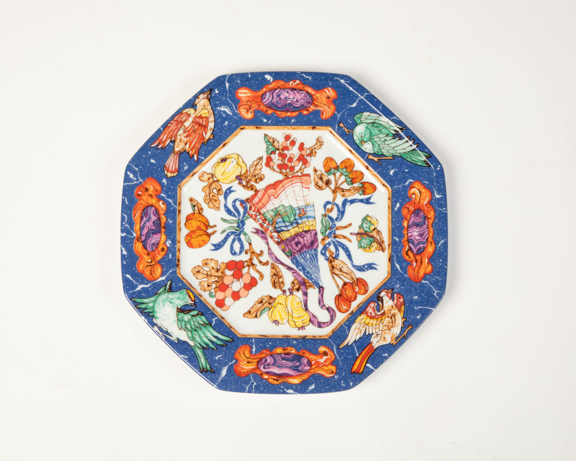 HERMES, Paris Modèle Marqueterie de pierres d'Orient et d'Occident - Assiette à diner en porcelaine D : 24 cm