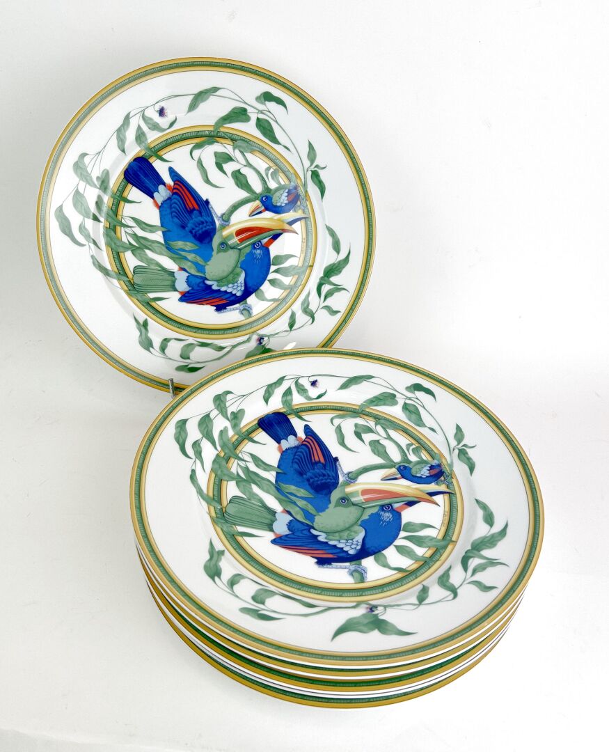 HERMES, Paris Modèle Toucan - Suite de 6 assiettes américaines en porcelaine D : 27 cm