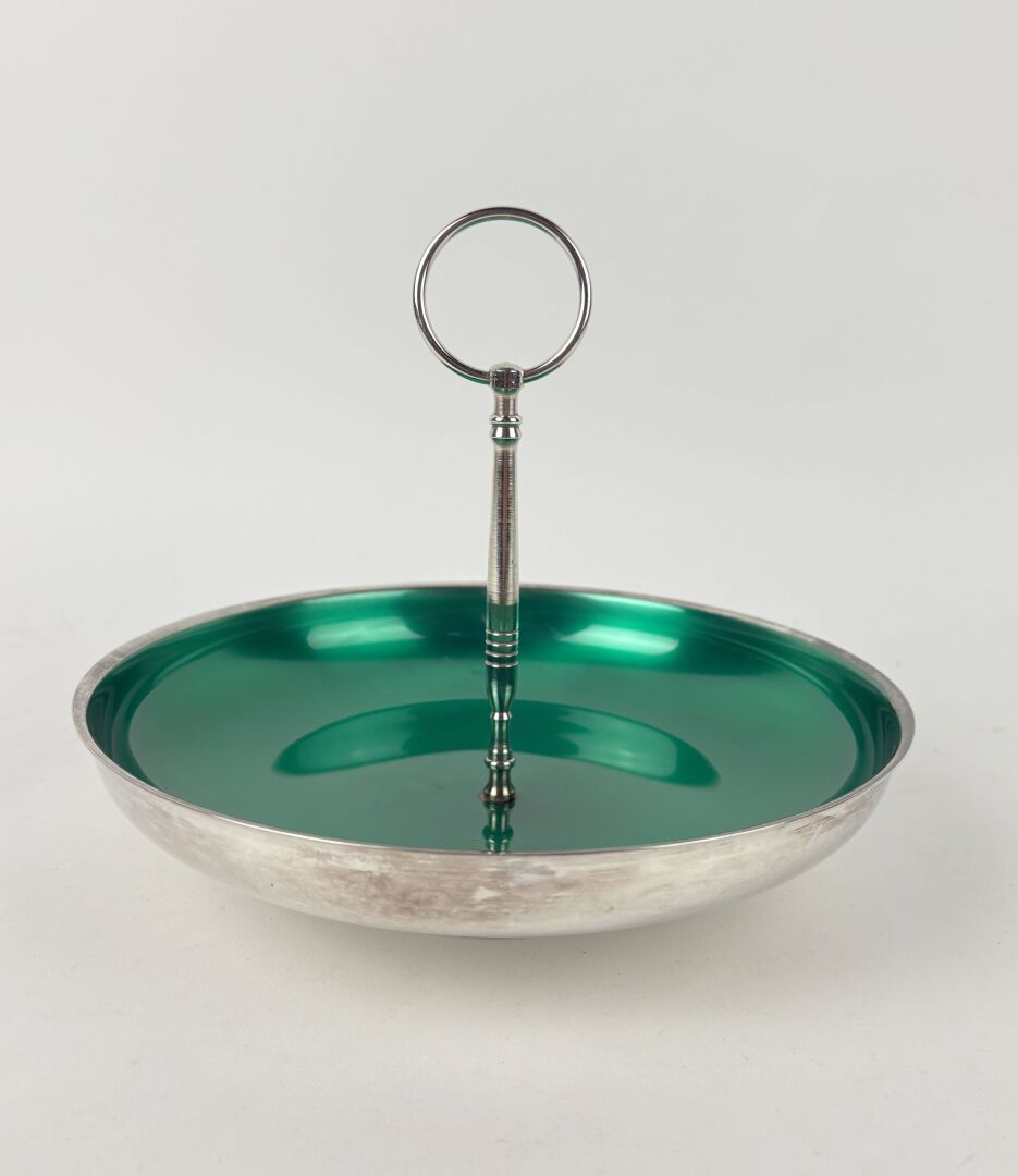 E P BRASS ROGERS Présentoir à mignardises en métal, l'intérieur de la coupelle laquée vert, Diam : 23 cm