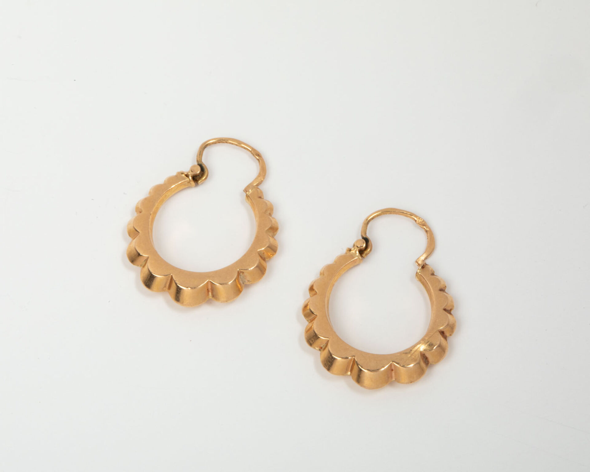 Paire de boucles d'oreilles crantées en or jaune (750 millièmes) Poids : 1.6 g.