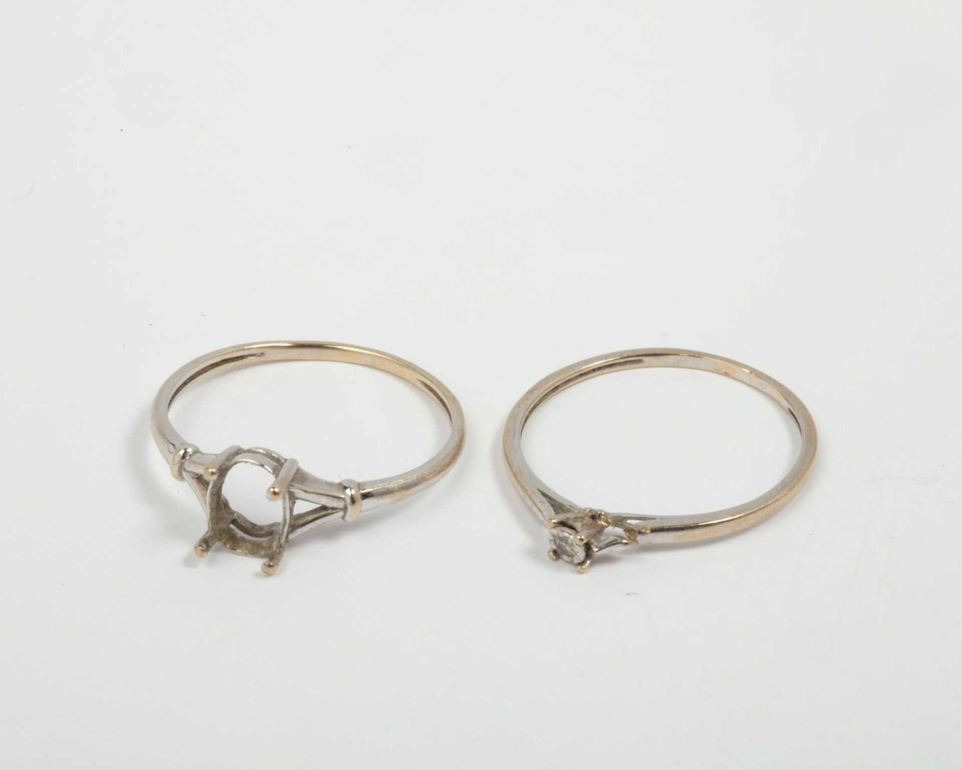 Deux solitaires en or blanc (750 millièmes), l'un serti d'une pierre blanche, l'autre au chaton vide Poids Brut : 1.9 g.