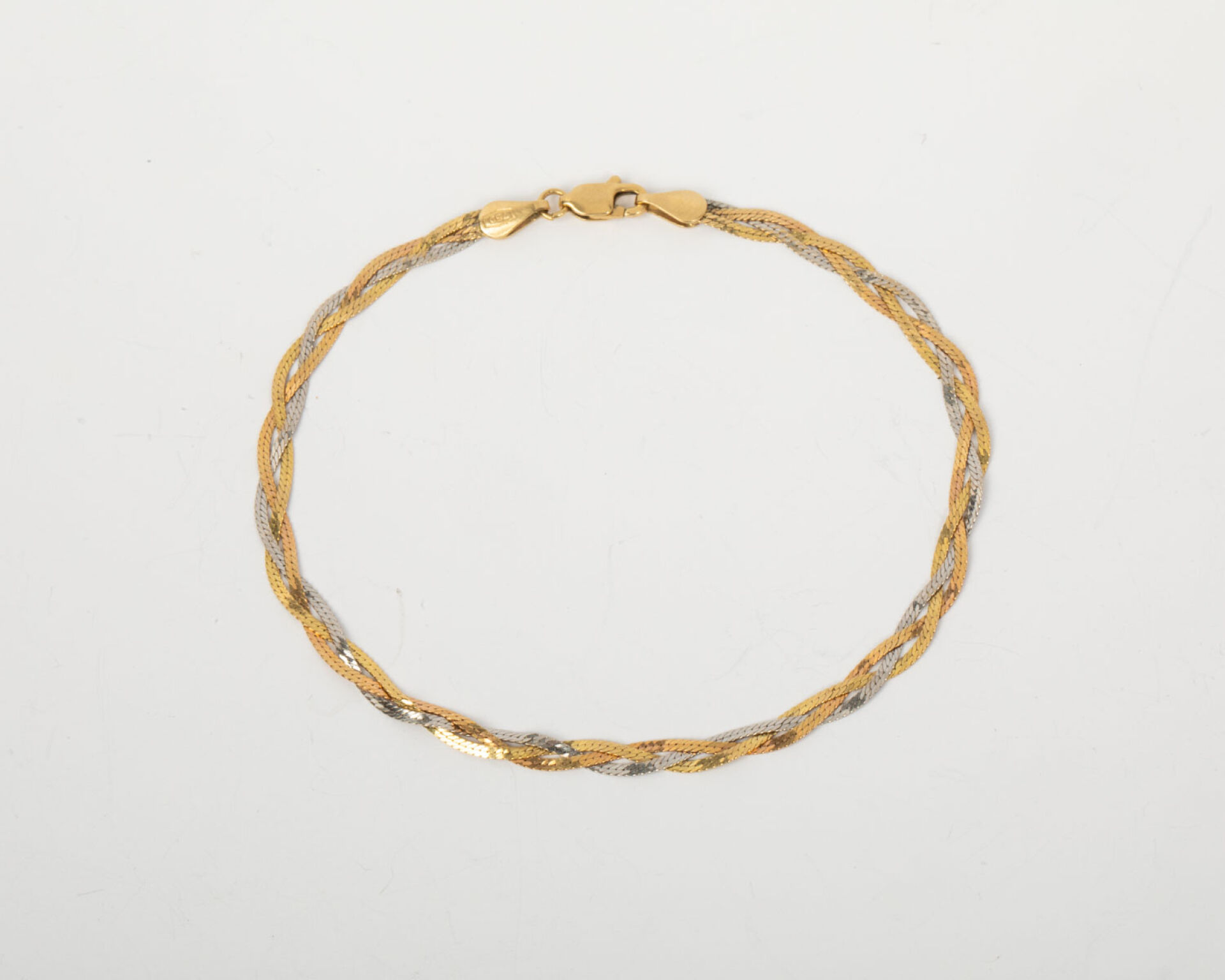 Bracelet trois ors en or (750 millièmes) ) décor tressé Poids : 2 g