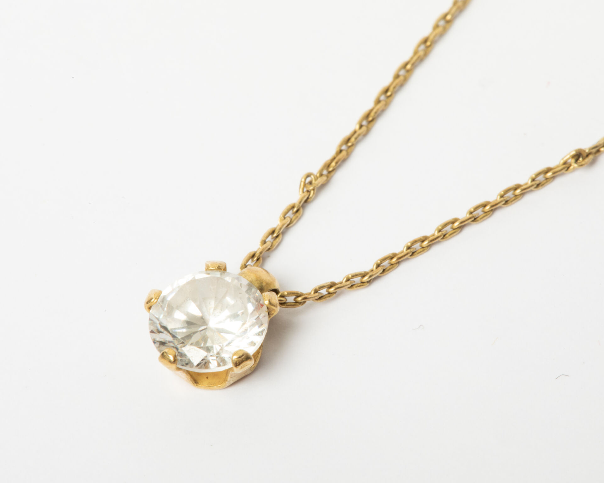 Pendentif serti d'une pierre blanche On y joint une chaine en vermeil accidentée