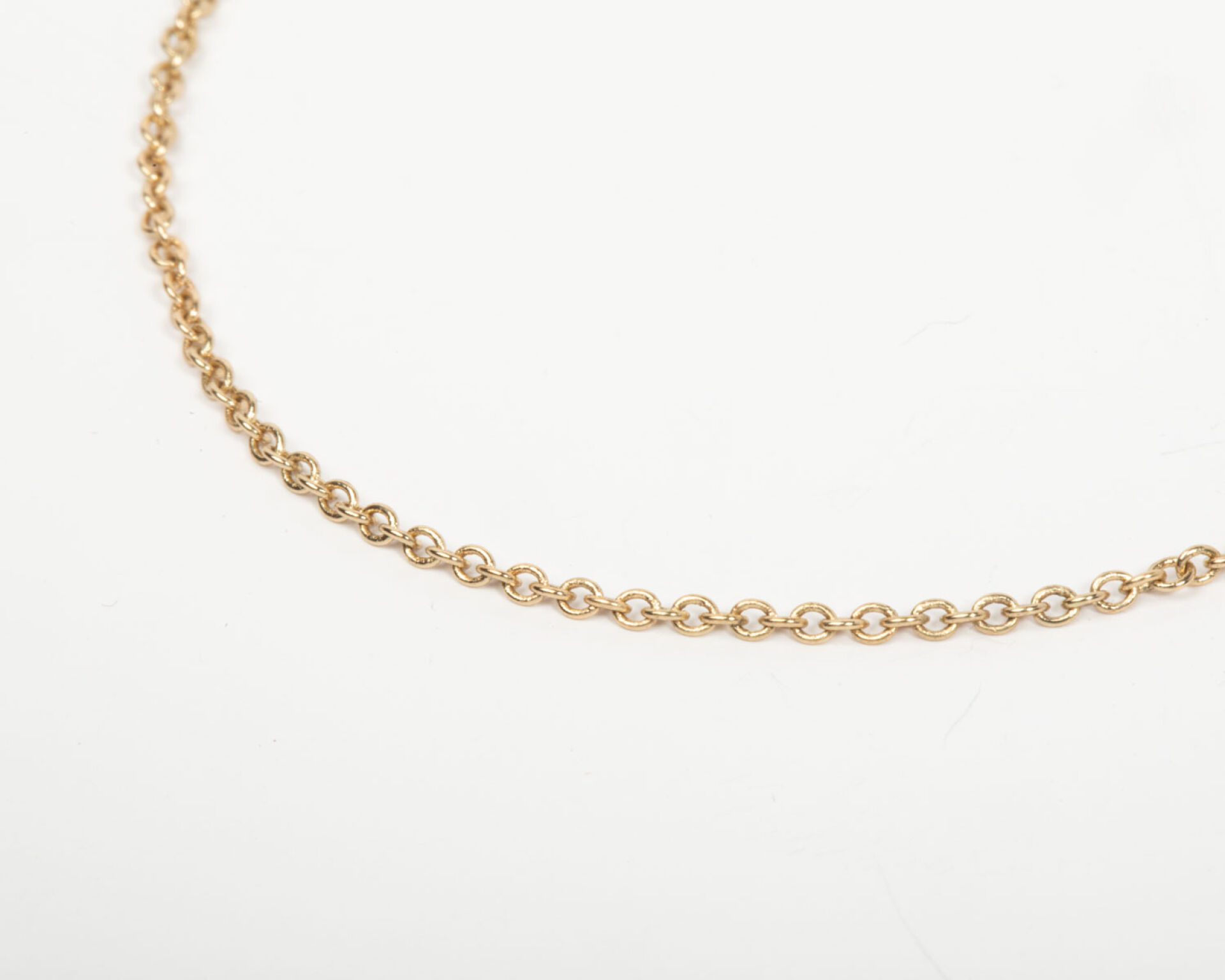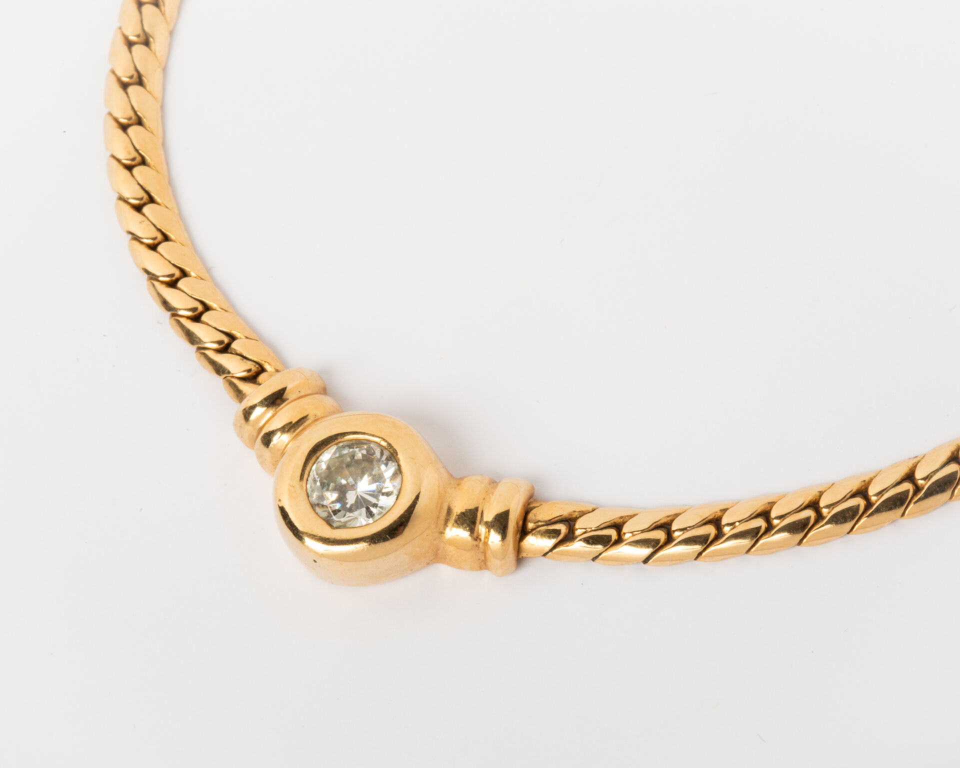 Collier en métal doré à maille gourmette à décor central sertis clos d'une pierre blanche