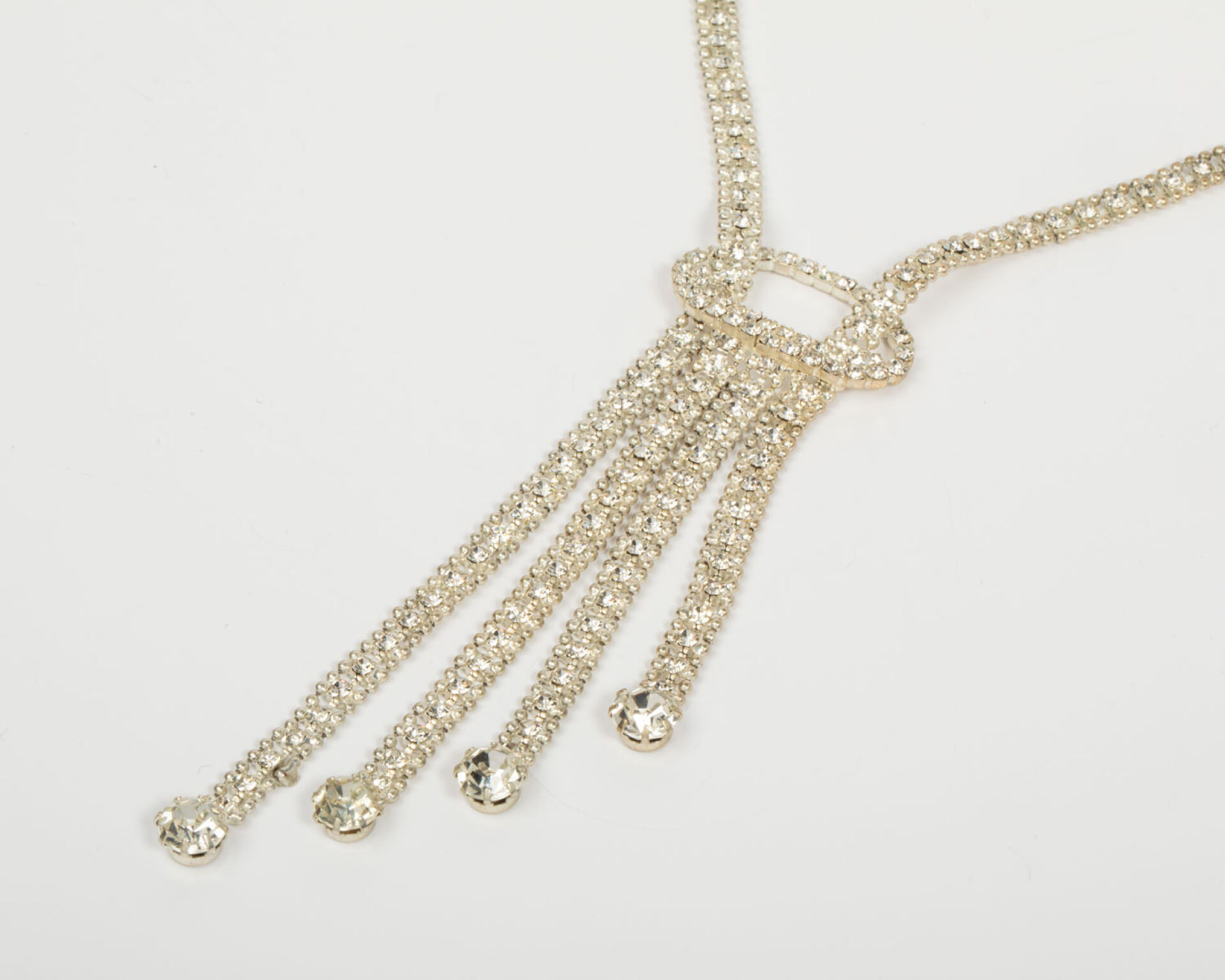 Collier négligé fantaisie en métal et strass L : 47 cm environ