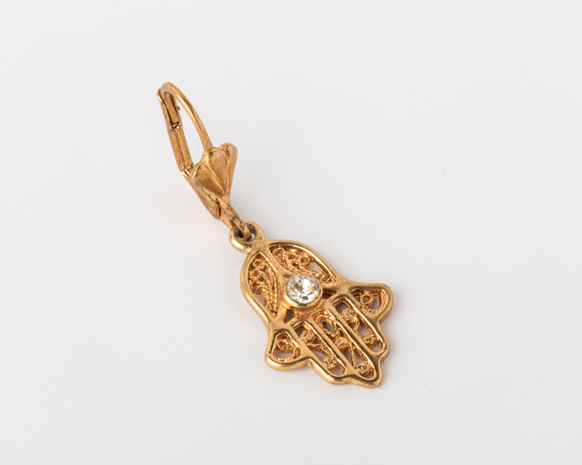 Dormeuse en métal doré à décor de main de Fatma ajourée et strass central