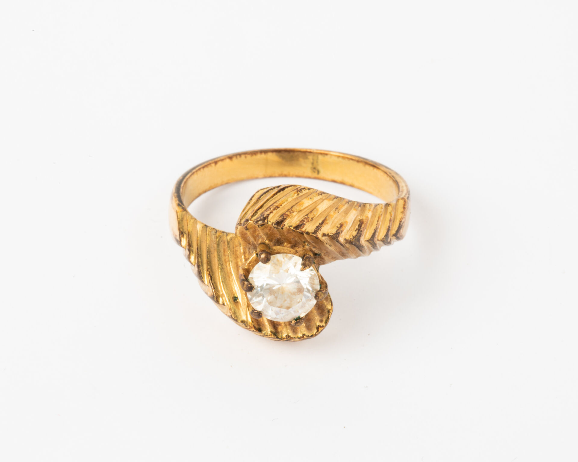 Bague en métal doré à décor de feuilles stylisées sertie d'un strass TDD : 57 Sauts de matière