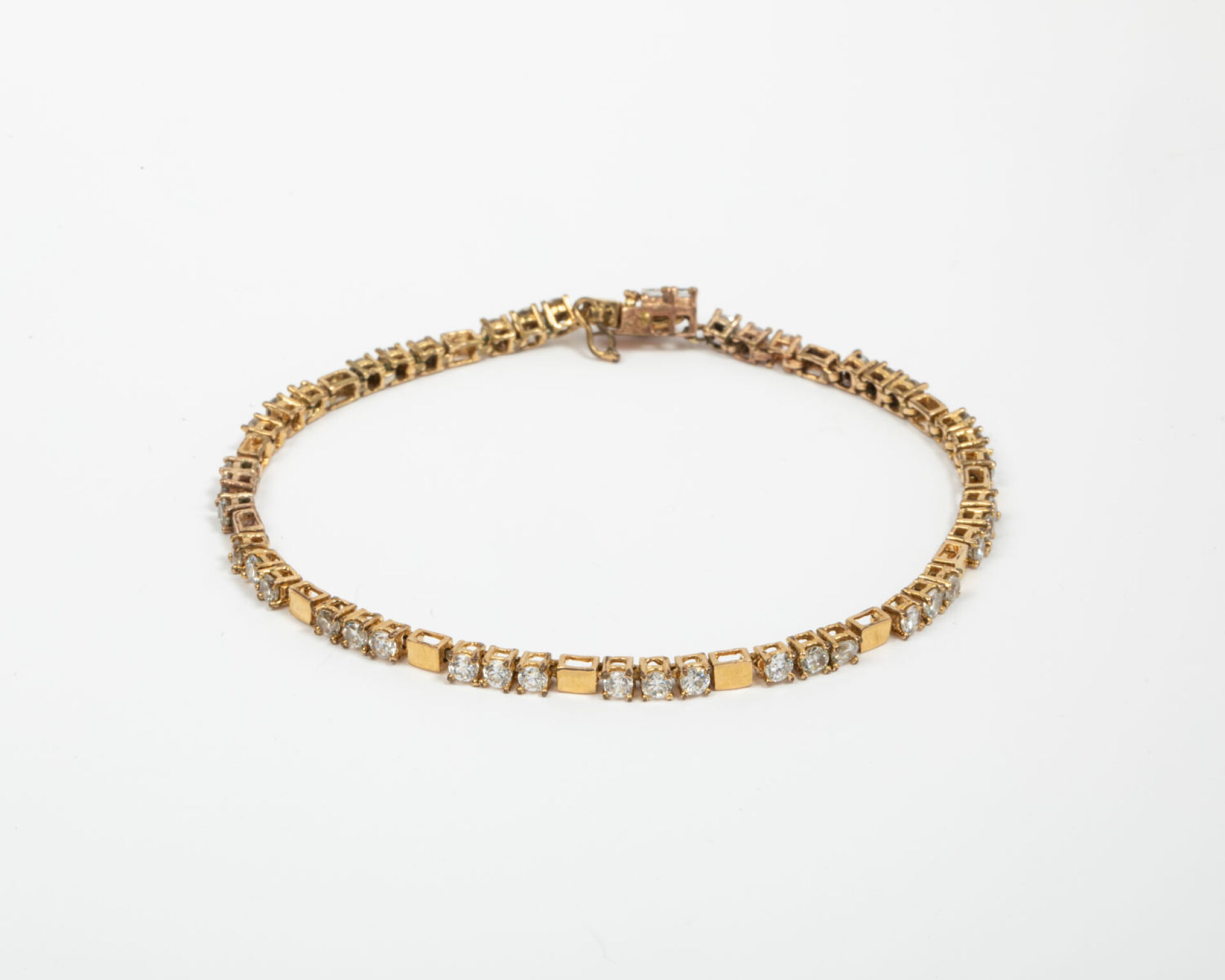 Bracelet en métal doré à maille alternée sertie de zirconiums