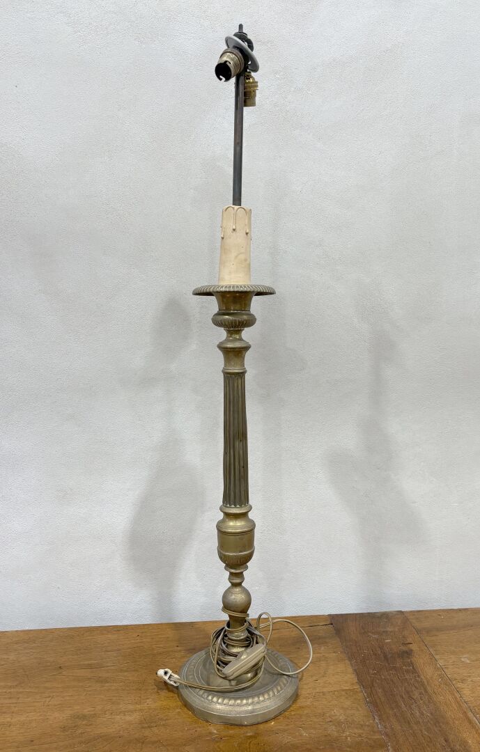 Flambeau en laiton, le fût cannelé, monté à l'électricité H : 90 cm
