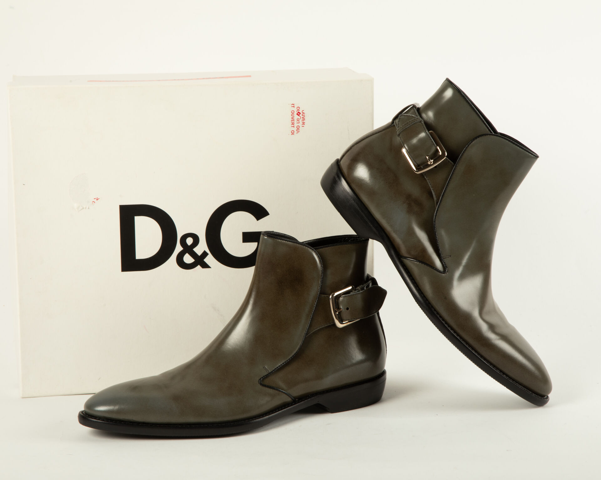 DOLCE & GABANNA Modèle First Class - Paire de bottines en cuir de veau grises, fermeture à boucle Pointure : 44 Dans leur boite