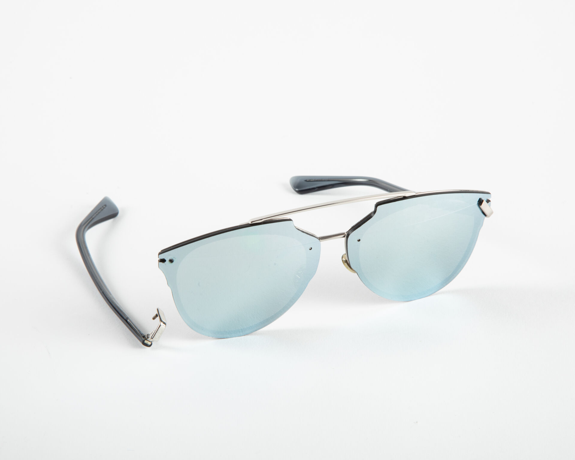 CHRISTIAN DIOR Modèle Dior Refleted P- Paire de lunettes de soleil en métal argenté et matériau composite bleu ciel Une branche accidentée