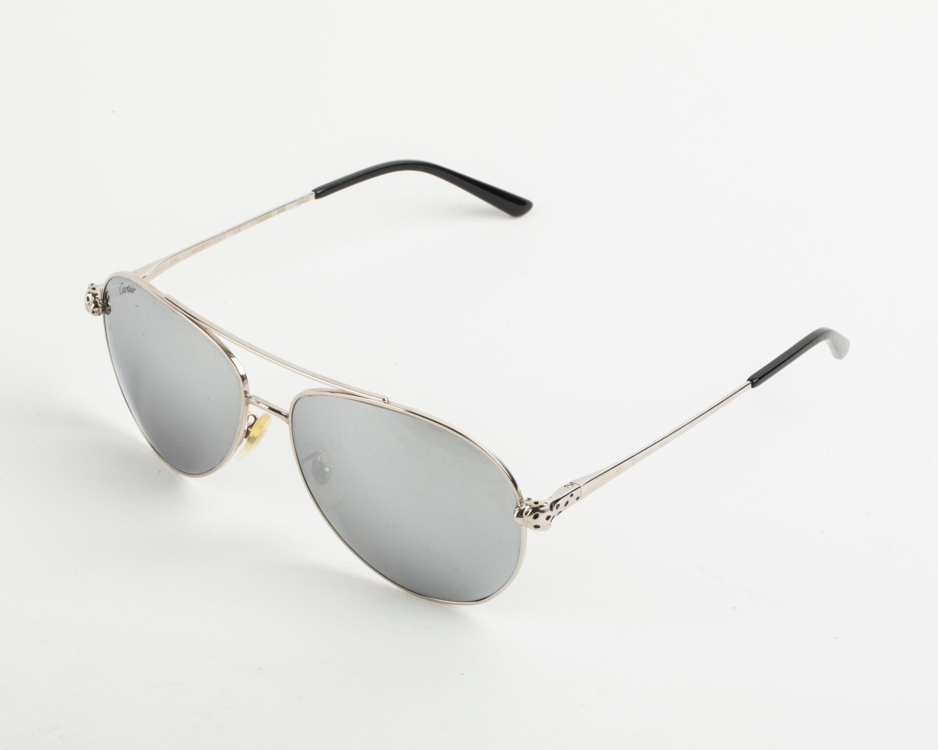 CARTIER, Paris Paire de lunettes de soleil en métal argenté de forme aviateur Dans leur écrin et boite d'origine