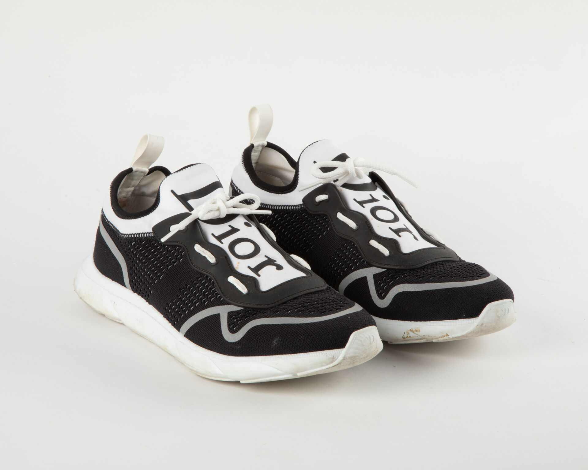 CHRISTIAN DIOR Modèle B21 Neo - Paire de baskets en tissus noir et blanc Tâches Pointure : 45