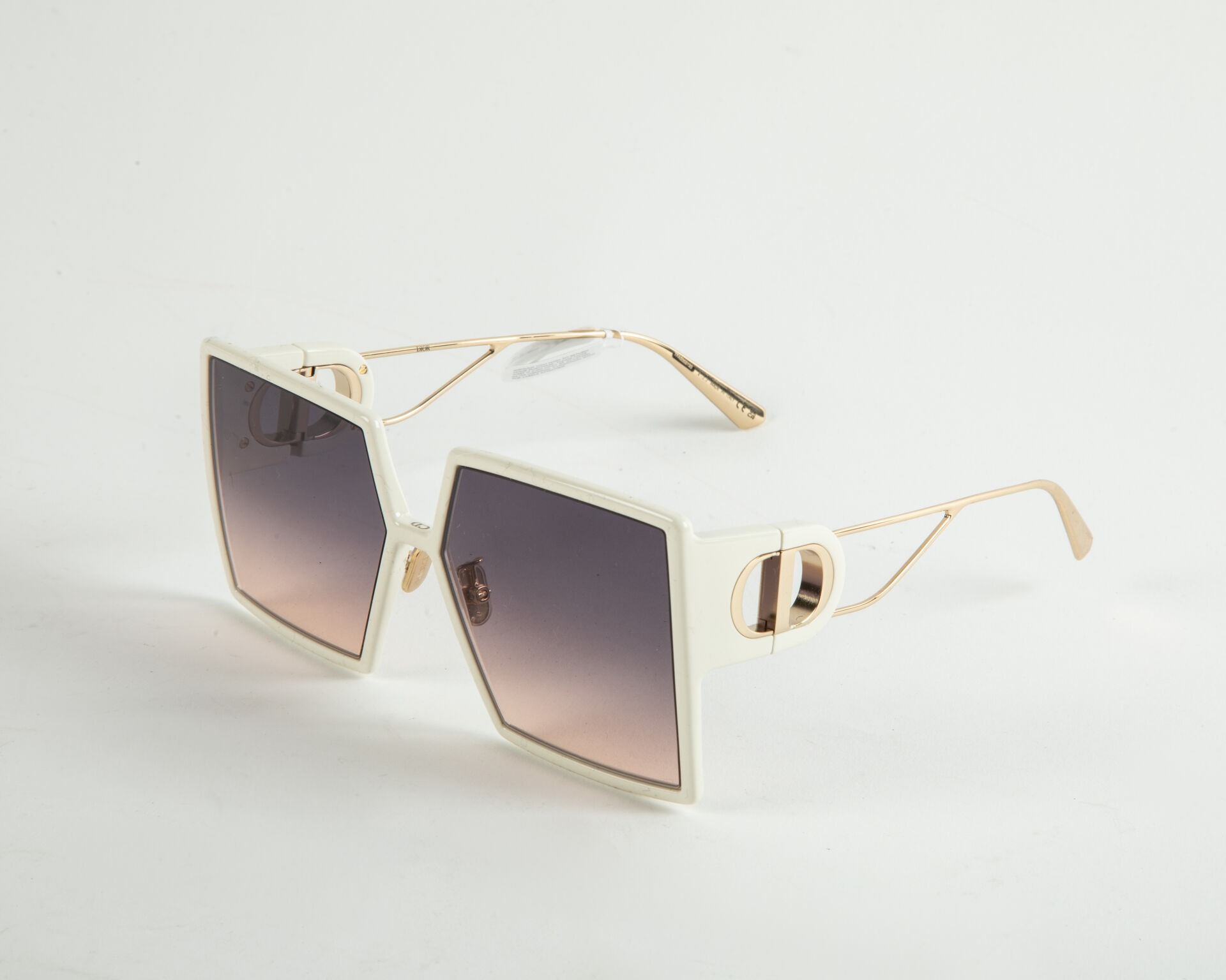 CHRISTIAN DIOR Modèle Montaigne - Paire de lunettes de soleil en acétate blanc et métal doré, verres fumés Avec étui et boite