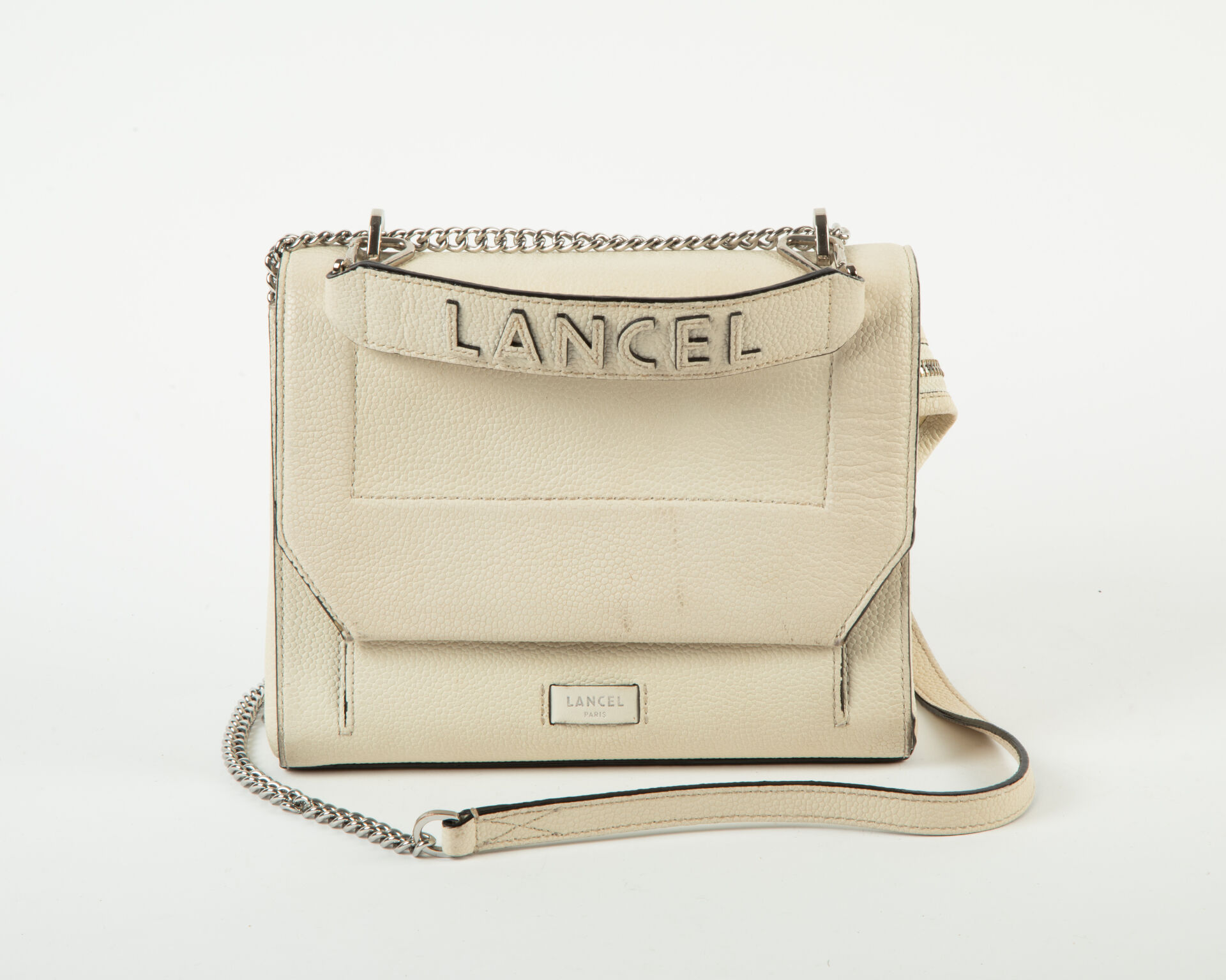 LANCEL Sac modèle Ninon en cuir blanc à une anse porter main et une bandoulière règlable A nettoyer H : 19 - L : 23 - P : 8.2 cm