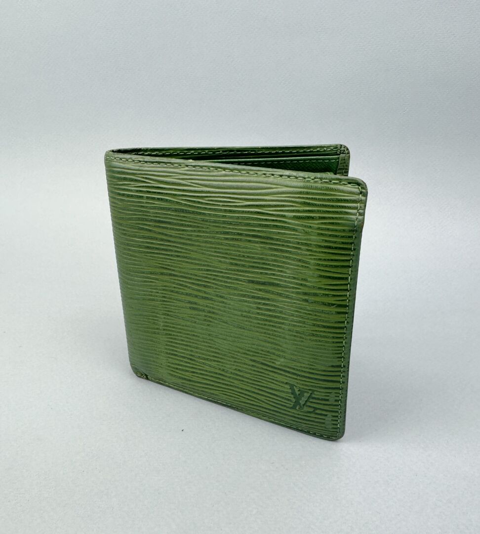 LOUIS VUITTON Portefeuille en cuir épi vert comprenant porte cartes, porte-monnaie Patine importante à l'extérieur, le porte carte intérieur décousu en partie droite