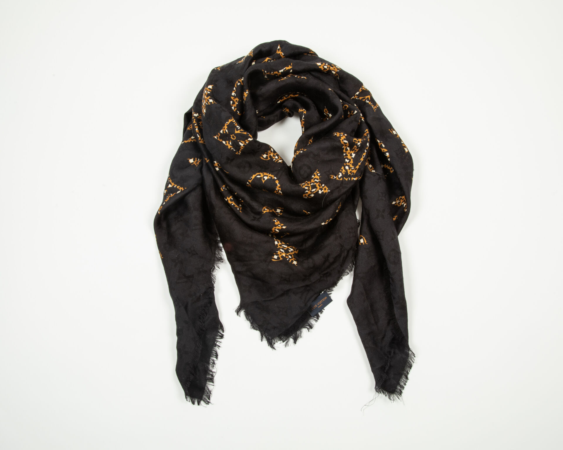 LOUIS VUITTON Châle en cachemire monogram noir à décor de monogram XL léopard 124 x 124 cm