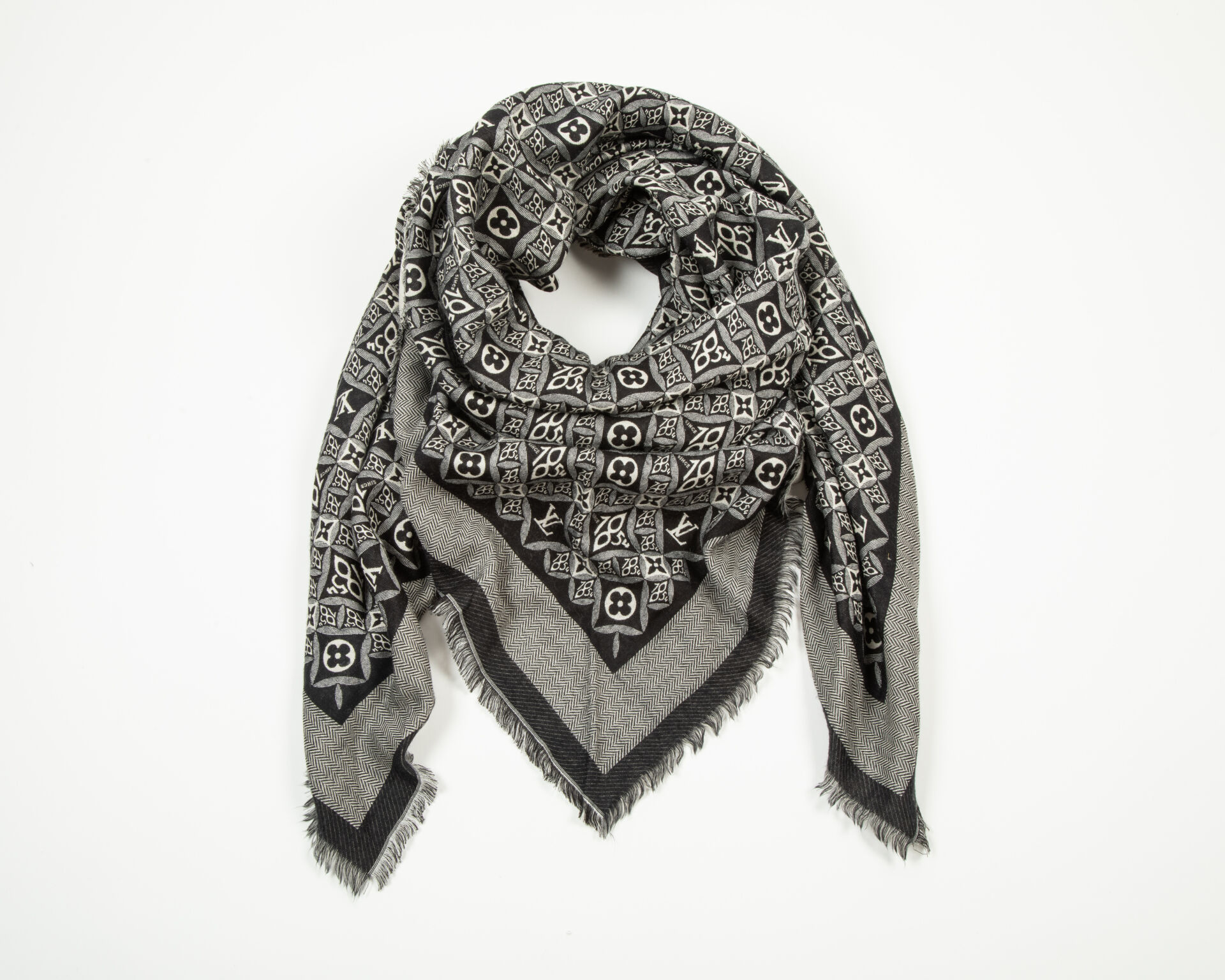 LOUIS VUITTON Modèle Since 1954 - Châle en jacquard monogram since 1854 noir et blanc 135 x 135 cm