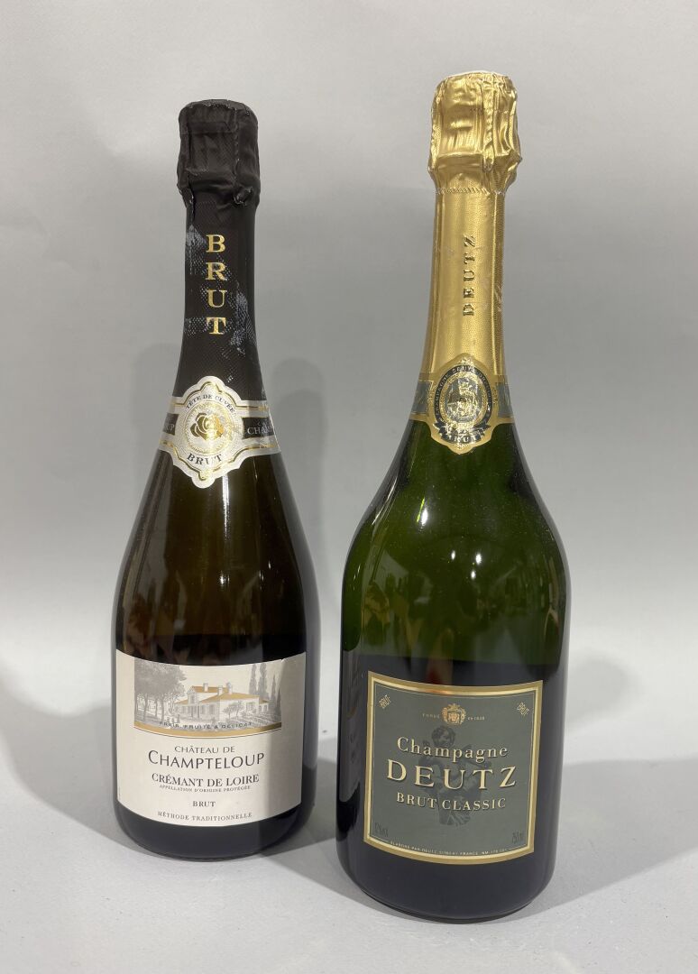 Deux bouteilles de champagne comprenant : - 1 Bouteille de Champagne Deutz - 1 Bouteille de Champagne brut Champteloup