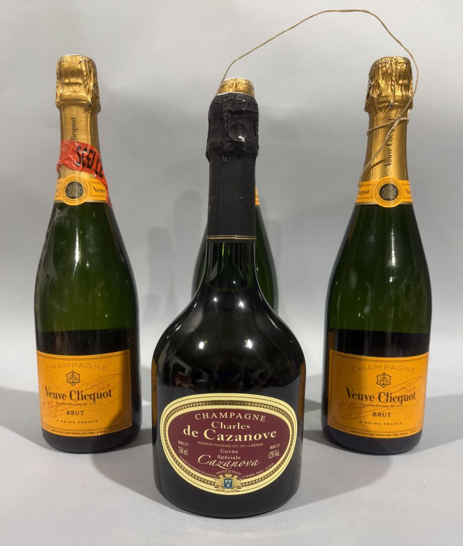 Veuve Cliquot Champagne brut - 3 Bouteilles On y joint une bouteille de champagne Charles de Cazanove