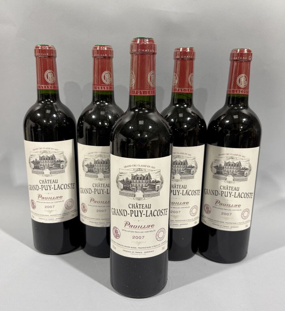 5 Bouteilles de Chateau Puy Lacoste rouge, appellation Pauillac 2007